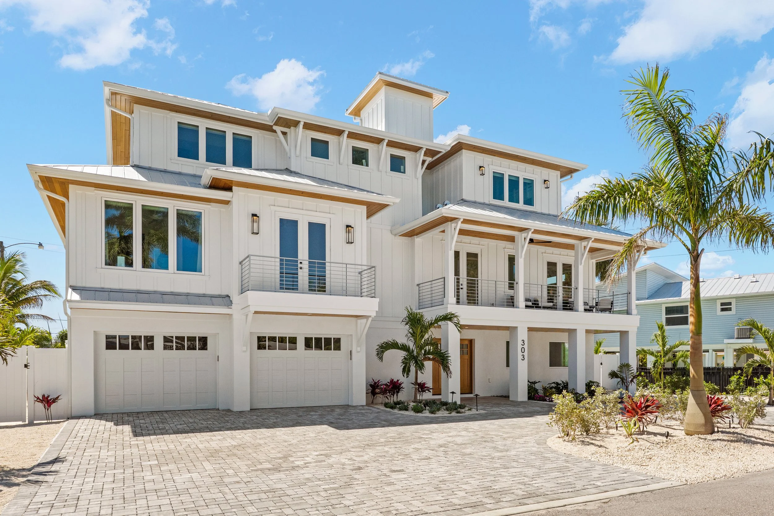 On the outside, we love incorporating tongue-and-groove ceilings that add extra warmth to our coastal, white exteriors.